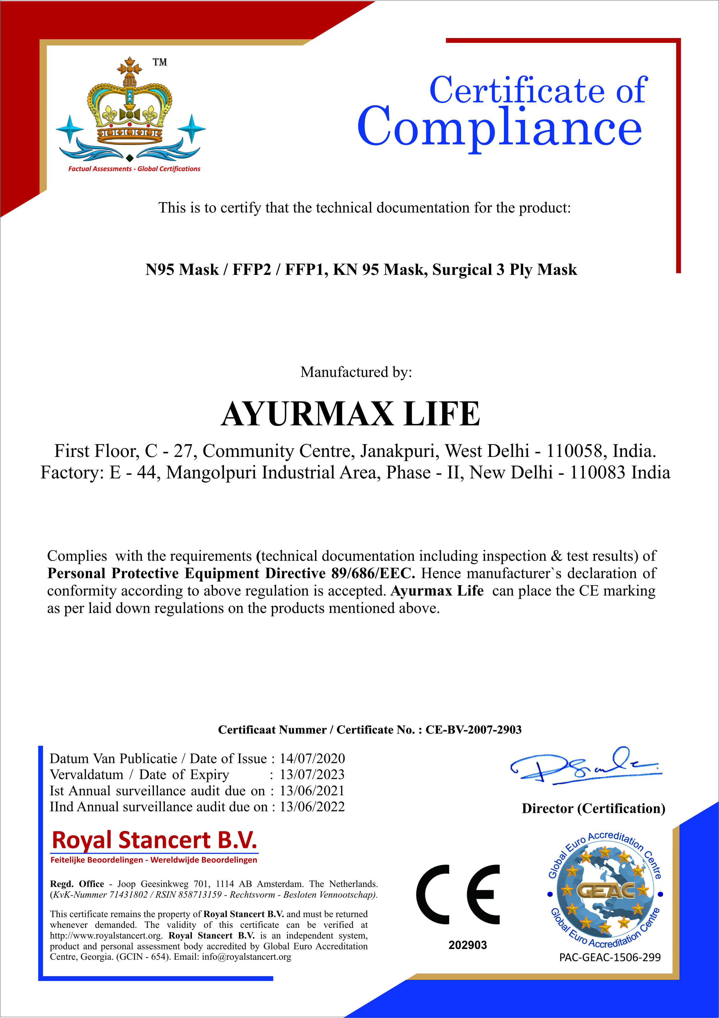 SSS Grade Fabric Layer of 50 GSM , Blocks heavy dust/pollution particles and splash resistant.