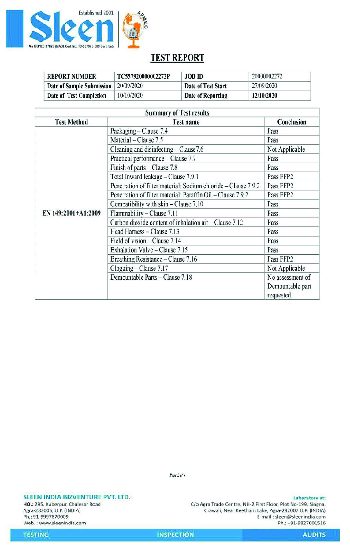 Made of total 6 layers of which 3 layers are melt-blown , Hotair cotton and SSMMS filters for higher filtration and re-usability.